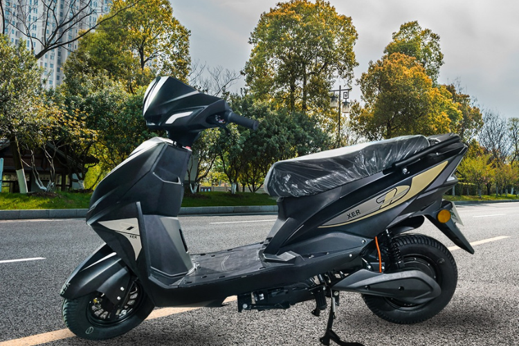XER Electric Scooter – 110–120 km range, BLDC motor, 2-seater, alloy wheels, digital display, multi ride modes, disc-drum brakes, and smart features.
